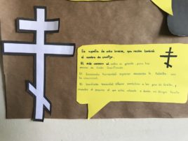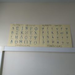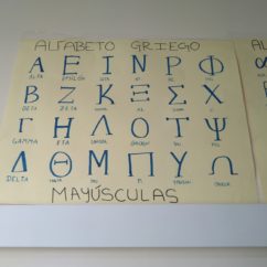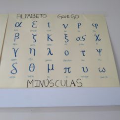 Los alumnos realizan en grupo un mural con las letras del alfabeto chipriota (griego) tanto mayúsculas como minúsculas.