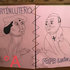 Actividad: Hemos trabajado las características de la religión oficial de Noruega (Iglesia evangélica luterana 82,1 %) comparándola con la religión mayoritaria de España (cristianismo católico). Se han realizado por grupos de tres o cuatro alumno/as búsquedas en Internet sobre los ritos, celebraciones, libros sagrados, moral, representante, santos, templos más importantes del país, etc. Por ejemplo: escudo, diócesis, Helga Byfuglien, confirmación, Harald V, etc.