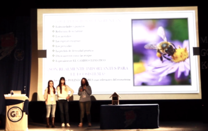 Natalia, Cristina y Ana, del Colegio Santa Teresa de Badajoz, están también muy comprometidas con la salud de nuestra Biosfera, que, por supuesto, pasa por el bienestar de estos himenópteros que protagonizan uno de los capítulos de la evolución biológica intelectualmente más atractivos de la Ciencia: el indisoluble vínculo con las fanerógamas, las modernas plantas con flores, que una vez cambió la faz de nuestra Tierra de una vez para siempre. Buen estudio multidisciplinar para procurarles refugio de nuestros excesos. Esperemos que, visto lo visto en las ponencias precedentes, no tengan que viajar en el espacio-tiempo para darles un nuevo planeta.